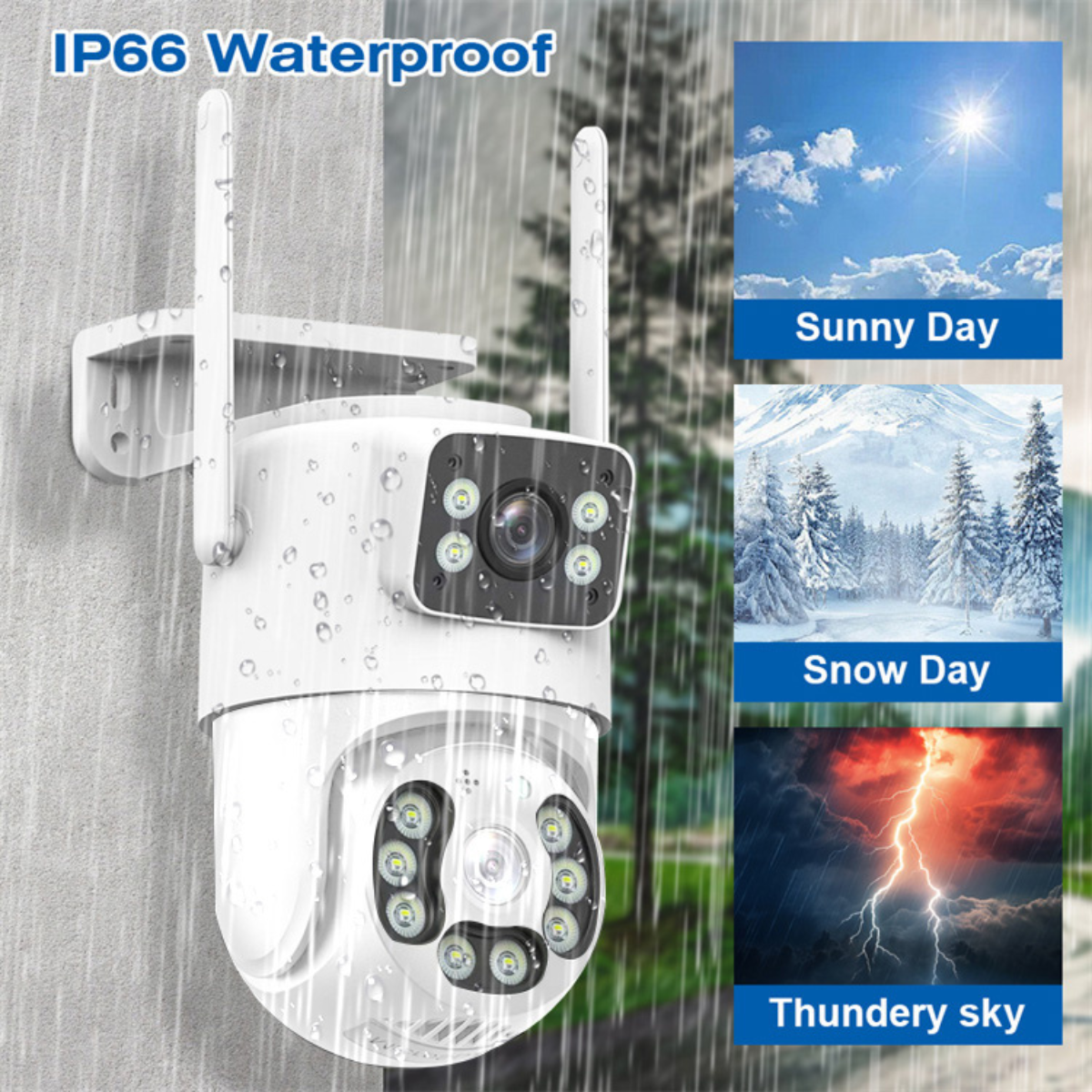 Îți prezentăm camera IP WiFi Dual Lens 2MP, echipată cu două lentile independente, ideală pentru supravegherea extinsă a curților, caselor, magazinelor sau birourilor. Oferă vedere panoramică și detalii clare, zi și noapte, cu viziune nocturnă color, audio bidirecțional, alertă mișcare în timp real și control complet din aplicație. Designul robust cu protecție IP66 o face perfectă pentru utilizare în exterior, indiferent de vreme.