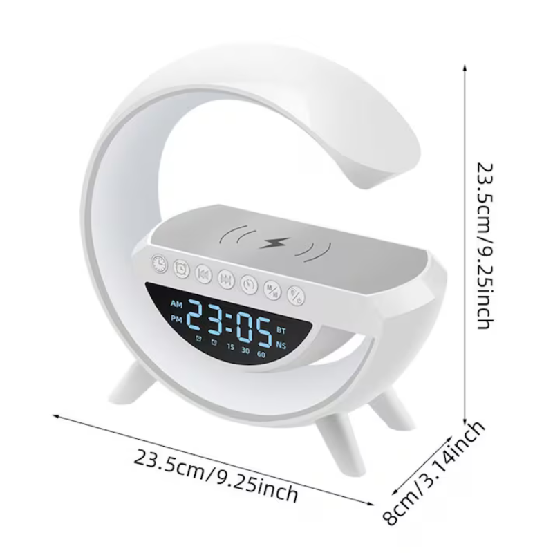 Lampa Smart LED RGB si Incarcator Wireless 15W, Boxa Bluetooth, Afisaj Ceas Digital, Alarma, Alb