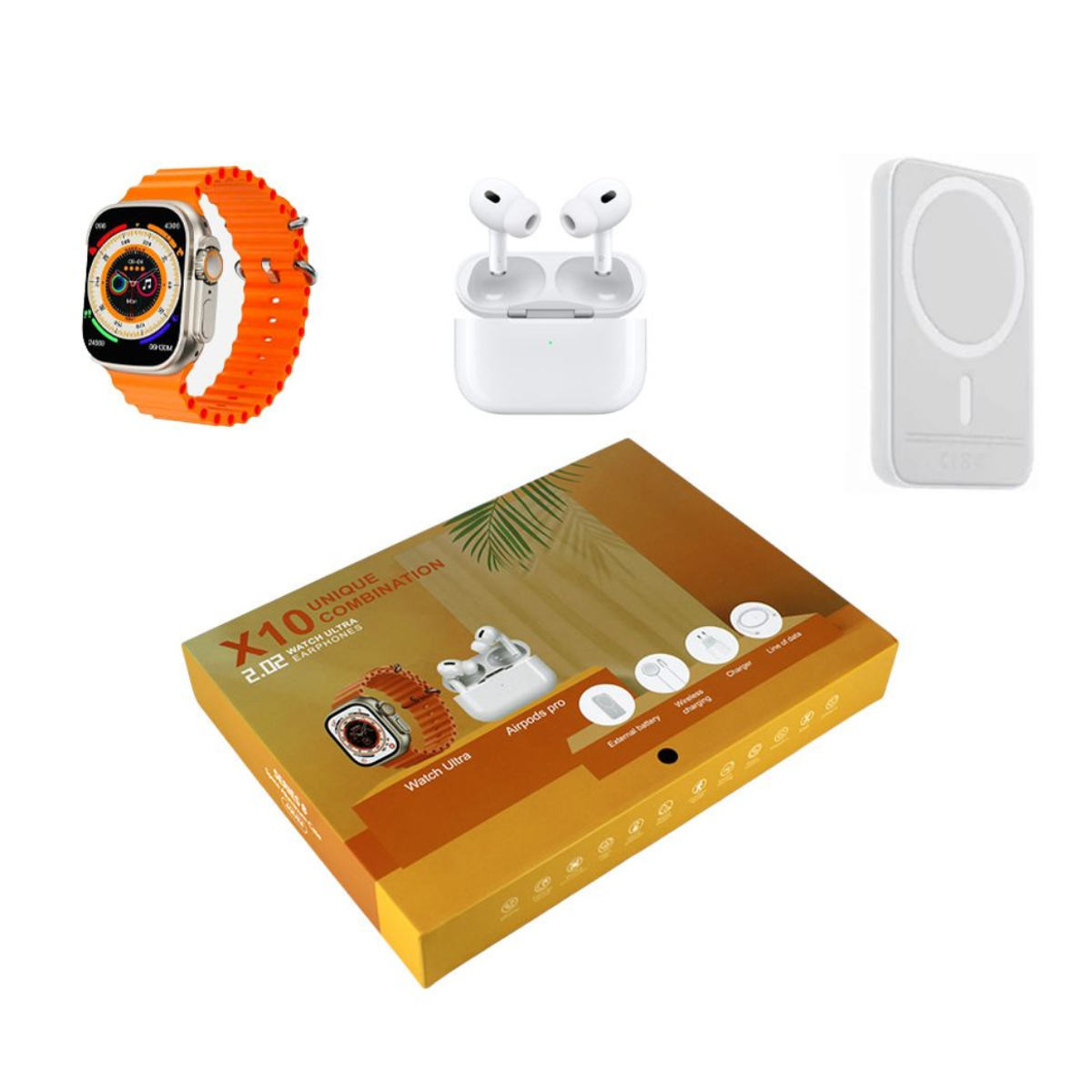 Smart Watch Ultra Seria 8 X10 (2.02") – Ceas Inteligent + Căști Bluetooth + Încărcator Wireless
