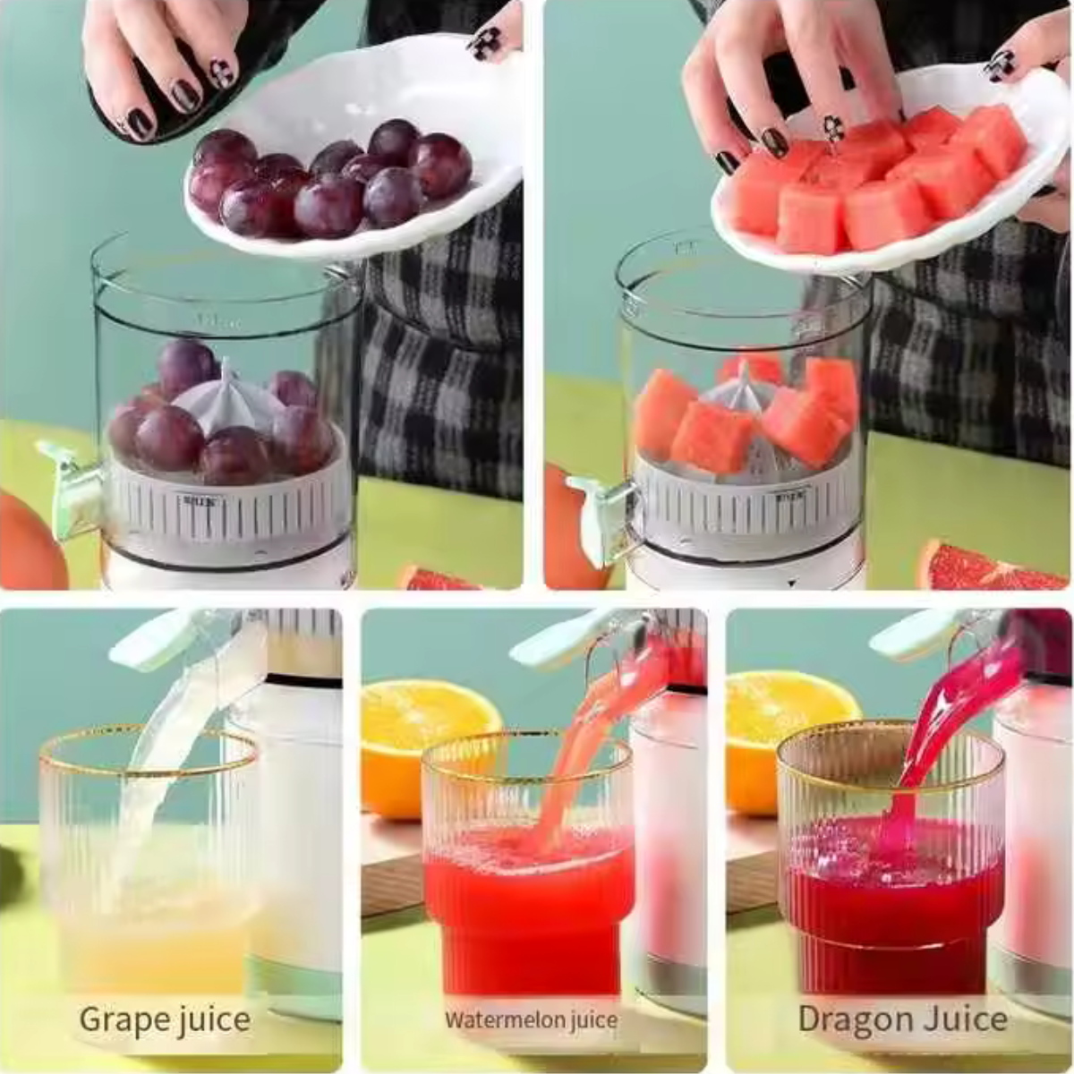 Perfect pentru sucuri din: portocale, lămâi, grapefruit, struguri, pepene, dragon fruit