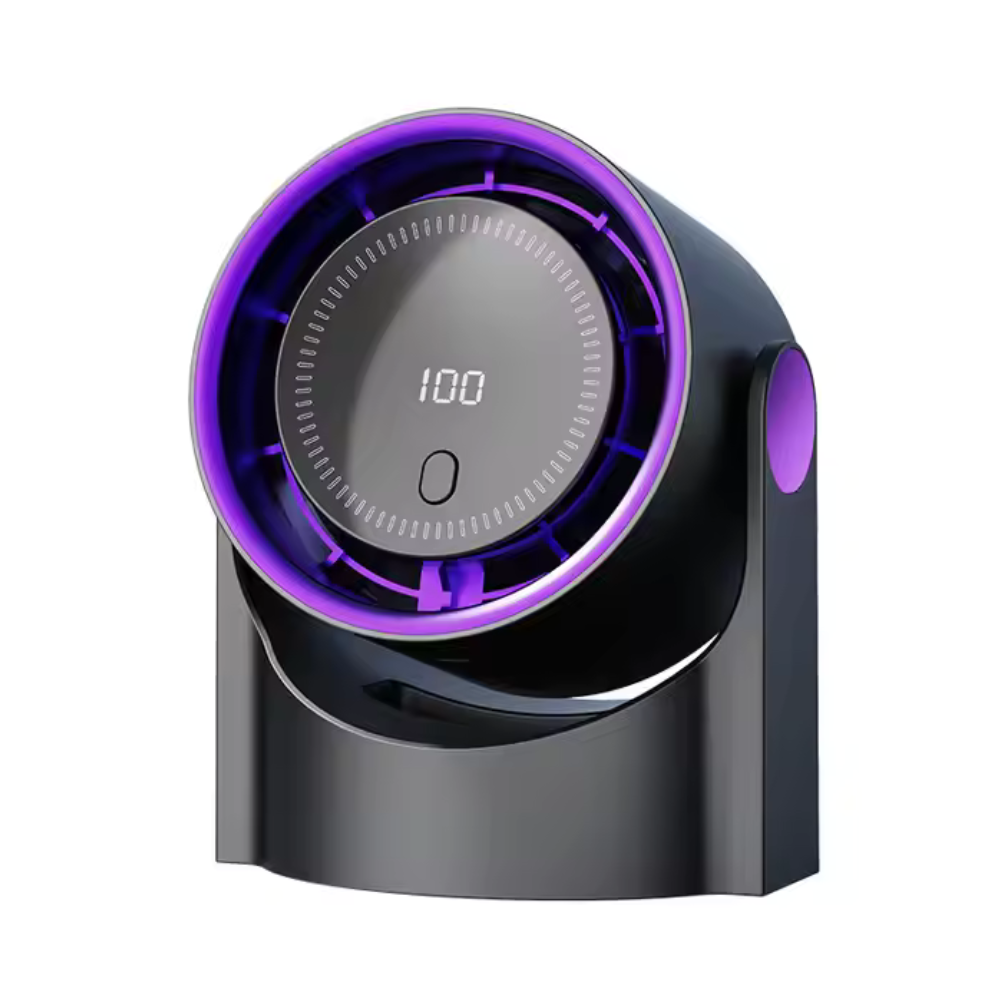Ventilator Portabil Inteligent cu Ecran Digital, 100 Viteze, Timer 3/6/9h, Baterie Reîncărcabilă ,Negru/Mov